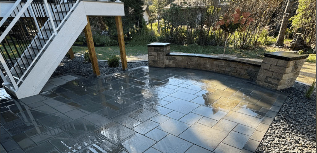 Patio installation involves designing and building a custom outdoor space using durable materials like pavers, stone, or concrete, creating a functional and beautiful area for relaxation and entertaining.