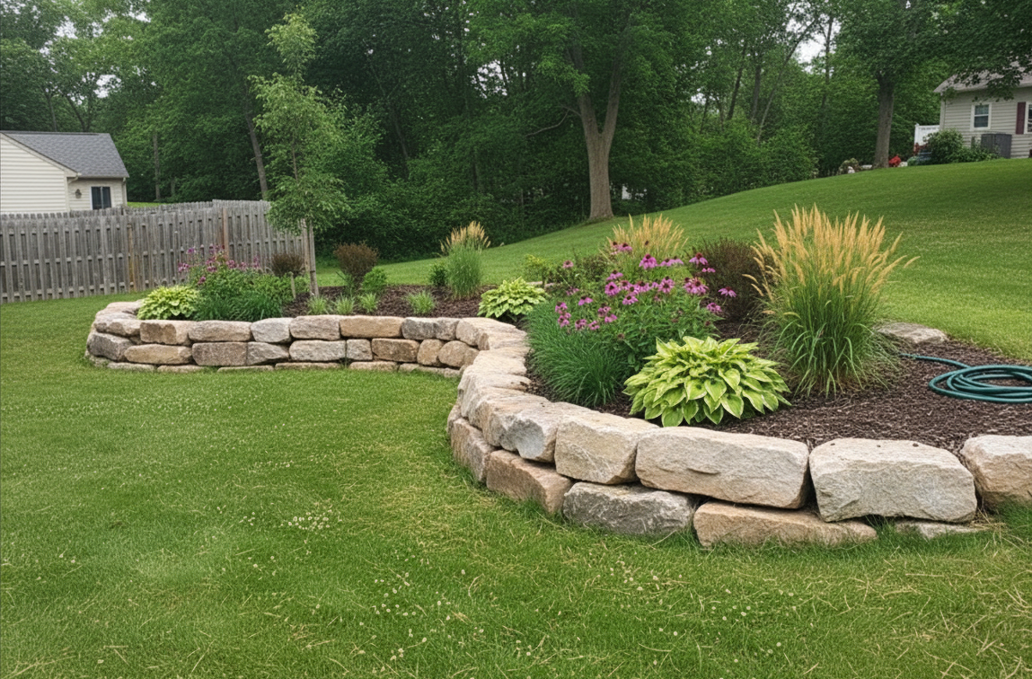 Natural stone installation adds timeless beauty and durability to your landscape. We use a variety of natural stones for patios, walls, pathways, and edging, creating elegant, rustic features that blend seamlessly with your outdoor space.